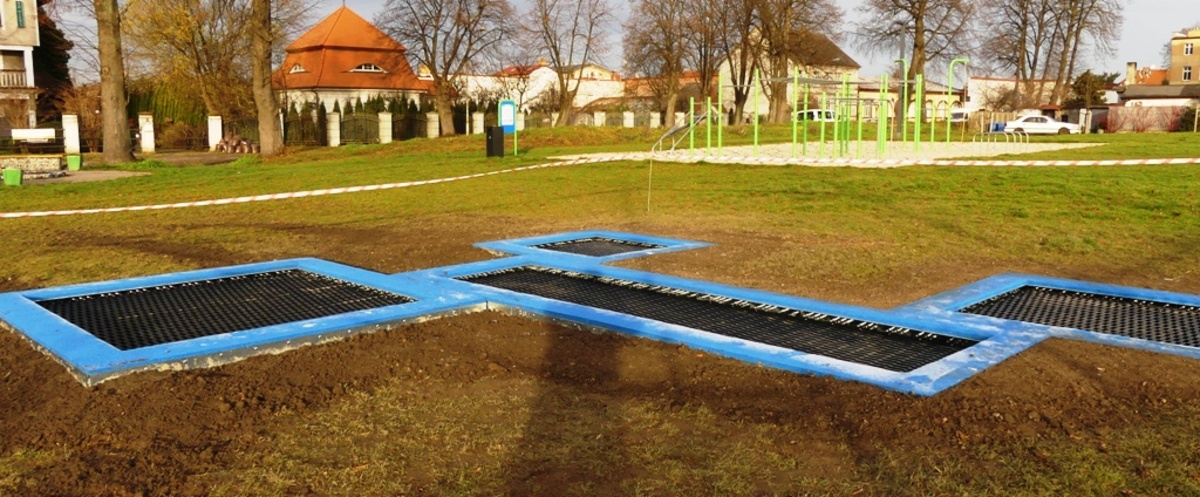 Wczoraj 10 grudnia 2019 r. referat współpracy europejskiej i inwestycji UM w Darłowie odebrał prace związane montażem  czterech  pól do skakania. Zamontowano je w na placu zabaw usytuowanym nad rzeką Wieprzą przy ul. Traugutta. Poszczególne  powierzchnie do skakania wynoszą odpowiednio:104x401 cm;129x129 cm; 154x154 cm; 204x204 cm.
