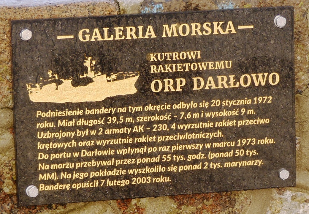 Miał numer burtowy 430, a imię i herb nosił od miasta Darłowa. Cząstka jego wyposażenia znajduje się w Muzeum Zamku Książąt Pomorskich w Darłowie.