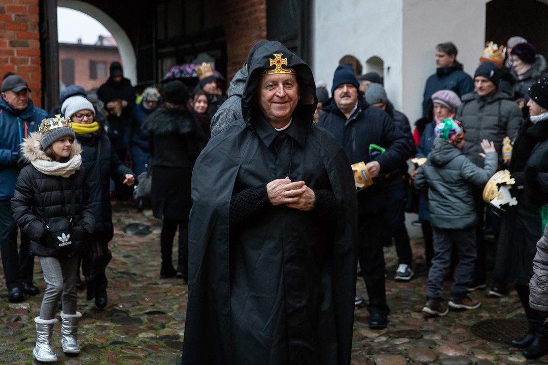 Na dziedzińcu zamkowym po okolicznościowym przemówieniu burmistrza Darłowa Arkadiusza Klimowicza sformułowano kolorowy orszak, kóremu przewodziła Sławieńska Orkiestra Dęta - na czele z dobrymi aniołami Darłowskiego Centrum Wolontariatu: Magdaleną Burduk, Justyną Tepurską i Joanną Witkowską.