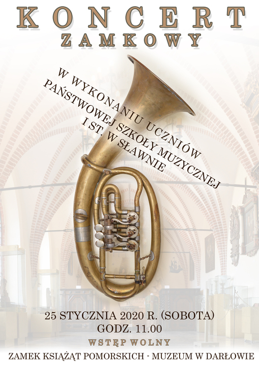 Państwowa Szkoła Muzyczna I st. w Sławnie i Zamek Książąt Pomorskich – Muzeum w Darłowie serdecznie zapraszają na Koncert Zamkowy 25 stycznia 2020 roku (sobota), godz. 11.00