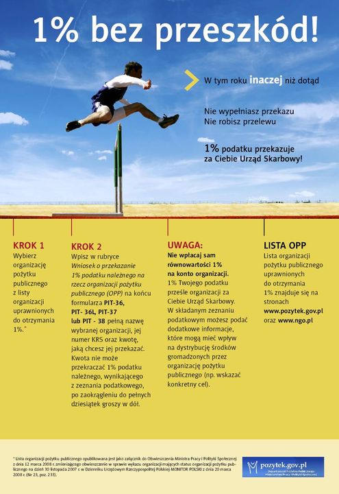 http://dokumenty.rcl.gov.pl/M2008096082701.pdf Do tej pory to podatnik miał obowiązek sprawdzić, czy organizacja, której chce przekazać 1% nie prowadzi takiej działalności. Teraz zrobi to za niego Minister Pracy i Polityki Społecznej.